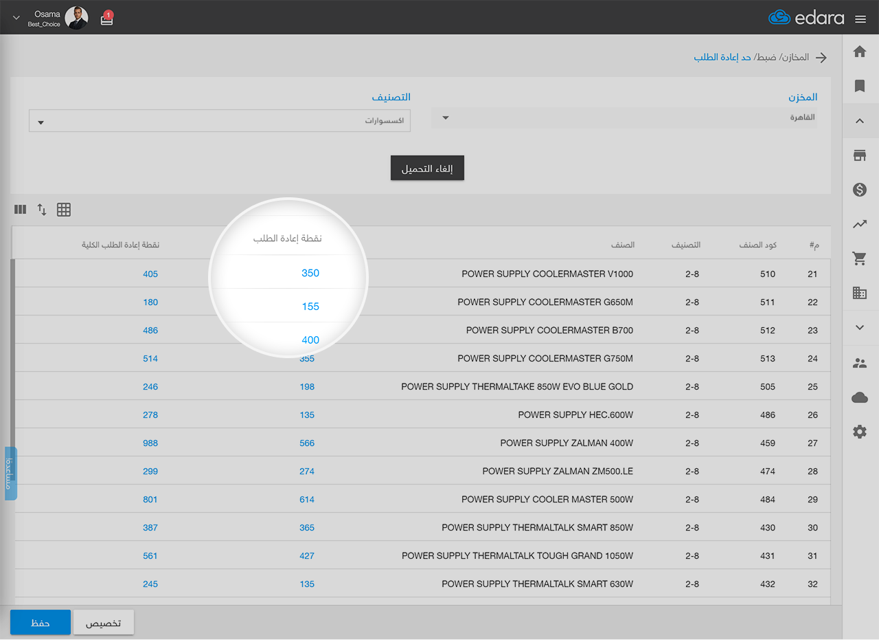 كن على علم بأي نقص في مخازنك قبل حدوثه. سينبهك "إدارة" لإعادة طلب الأصناف التي أوشكت على النفاد، كما يُظهر لك الأصناف التي تُباع ببطء، ويساعدك لتقرر ما يناسب عملاءك.