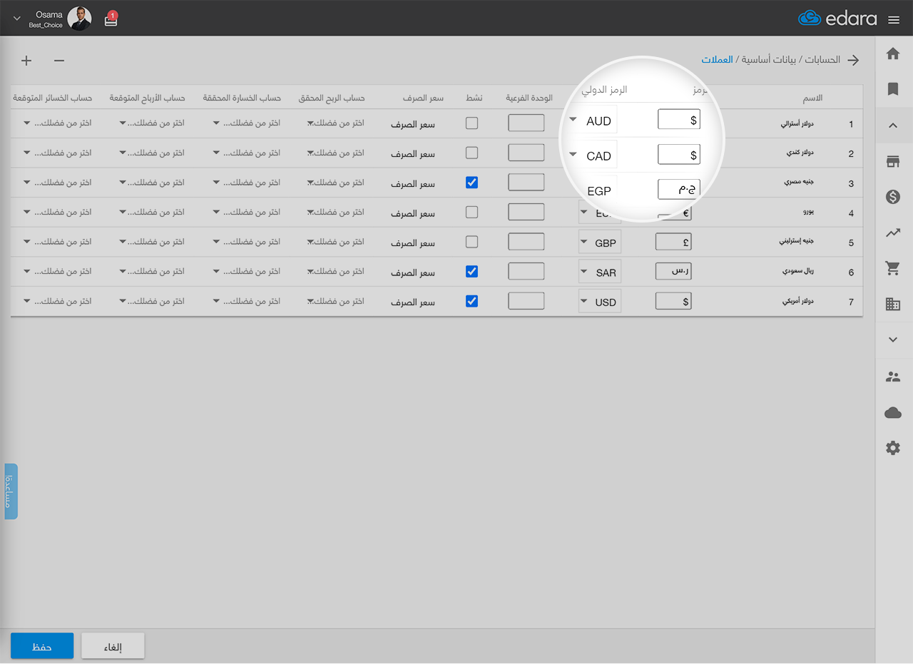 يدعم "إدارة" عملات متعددة، كل ما عليك فعله هو تحديد العملات التي تتعامل بها وسيقوم "إدارة" بالتعديل وفقًا لسعر الصرف دون الحاجة إلى القيام بأي تعديلات يدوية.